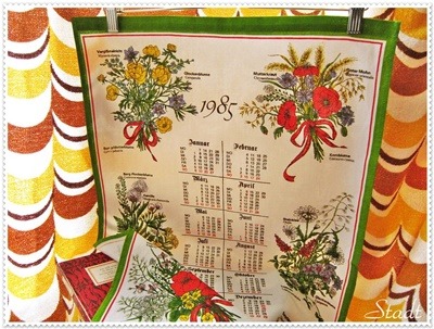 前から販売している「お花の絵とそのドイツ語名の1985年カレンダークロス」。