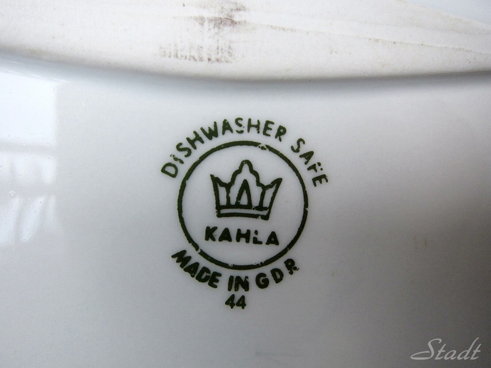 【DDR/Kahla社】持ち手が青い、白い陶器トレイ